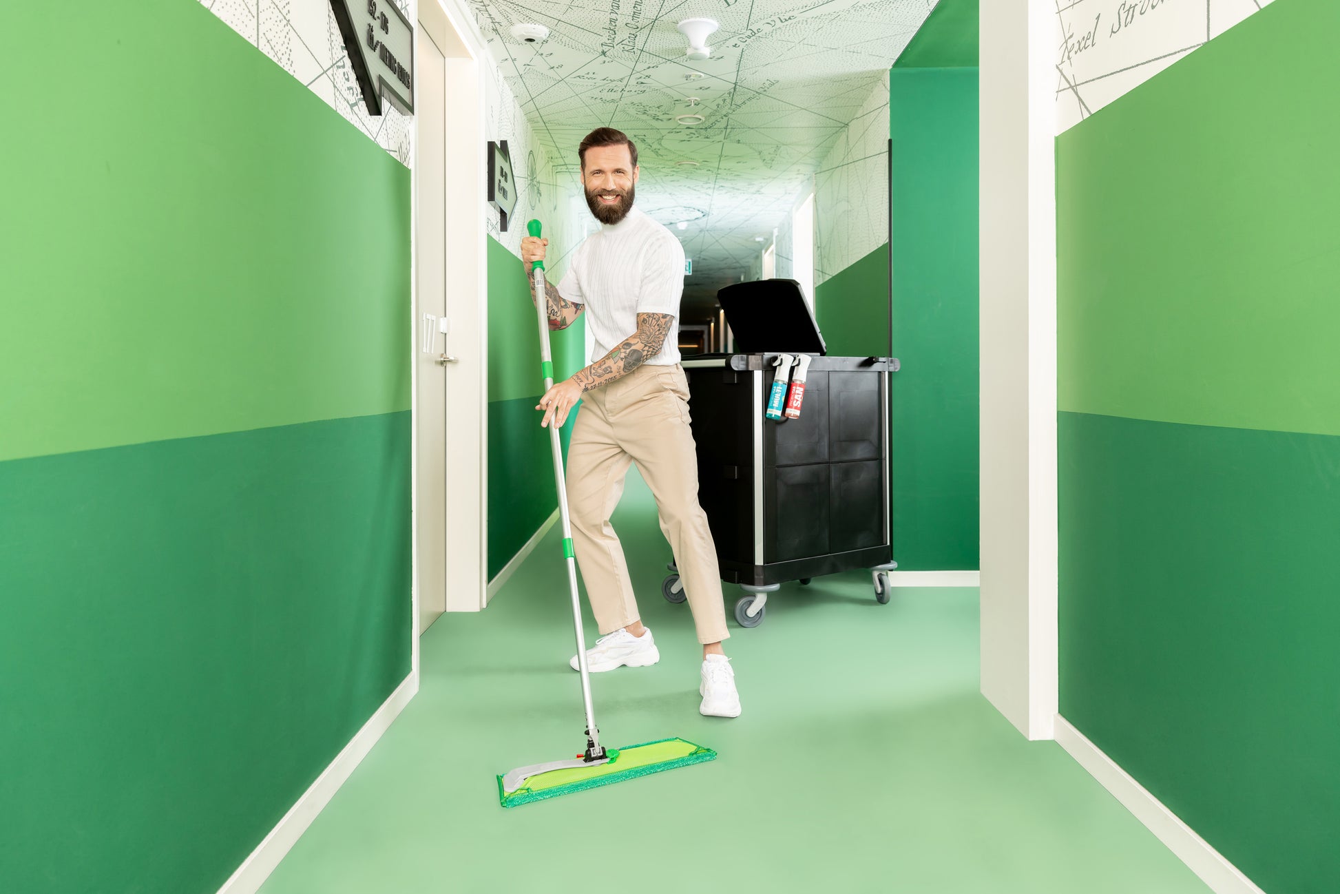 Auswringen. Dadurch erfolgt die Pflege eines harten Bodens schneller und vor allem